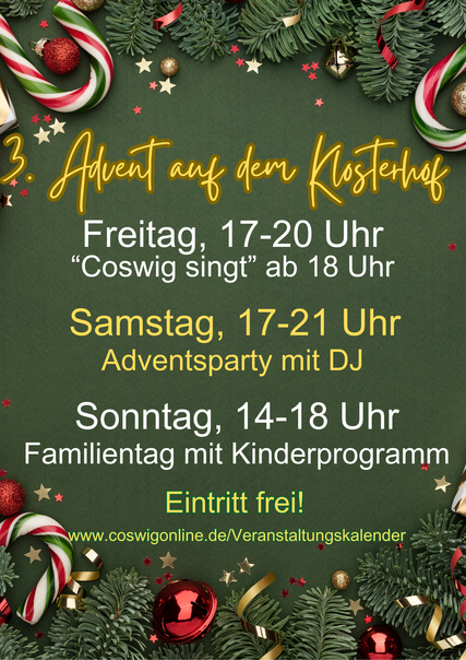 Wir freuen uns auf Ihren Besuch und laden Sie herzlich ein, diese besondere Adventsstimmung mit uns zu teilen! Weitere Informationen zur Veranstaltung erhalten Sie telefonisch unter 034903 610 165 oder per E-Mail an m.schulze@coswig-anhalt.de.